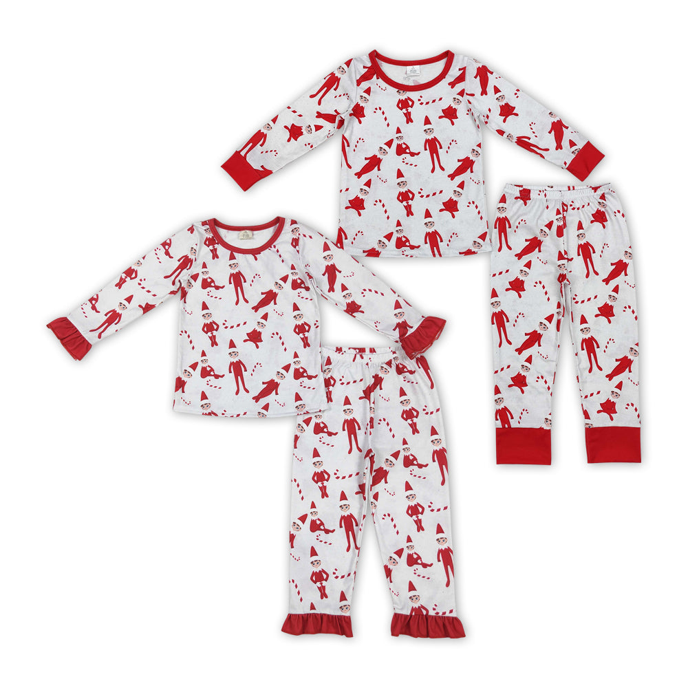 Cartoon Shelf Red Print Sibling Christmas Bamboo Pajamas Matching Clothes