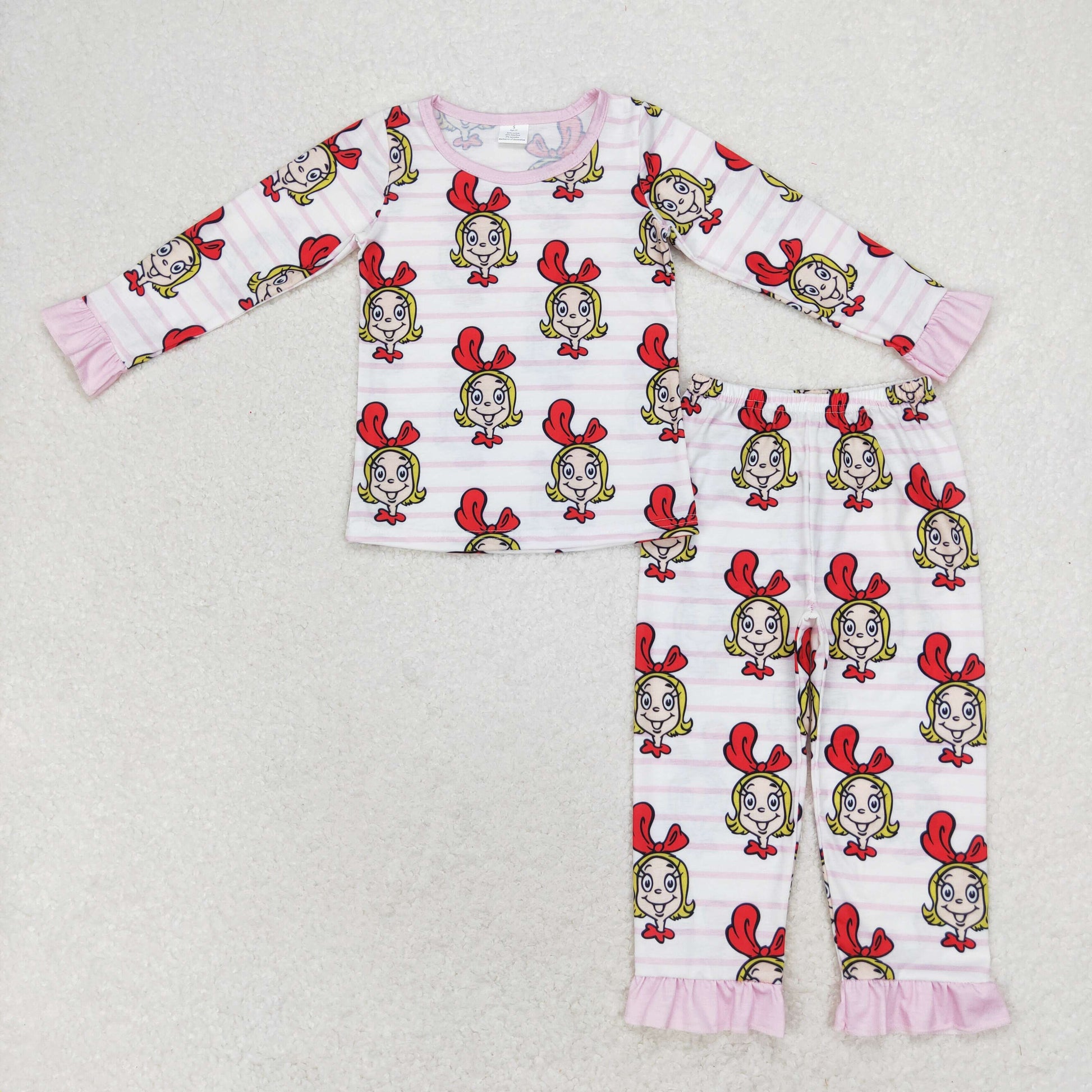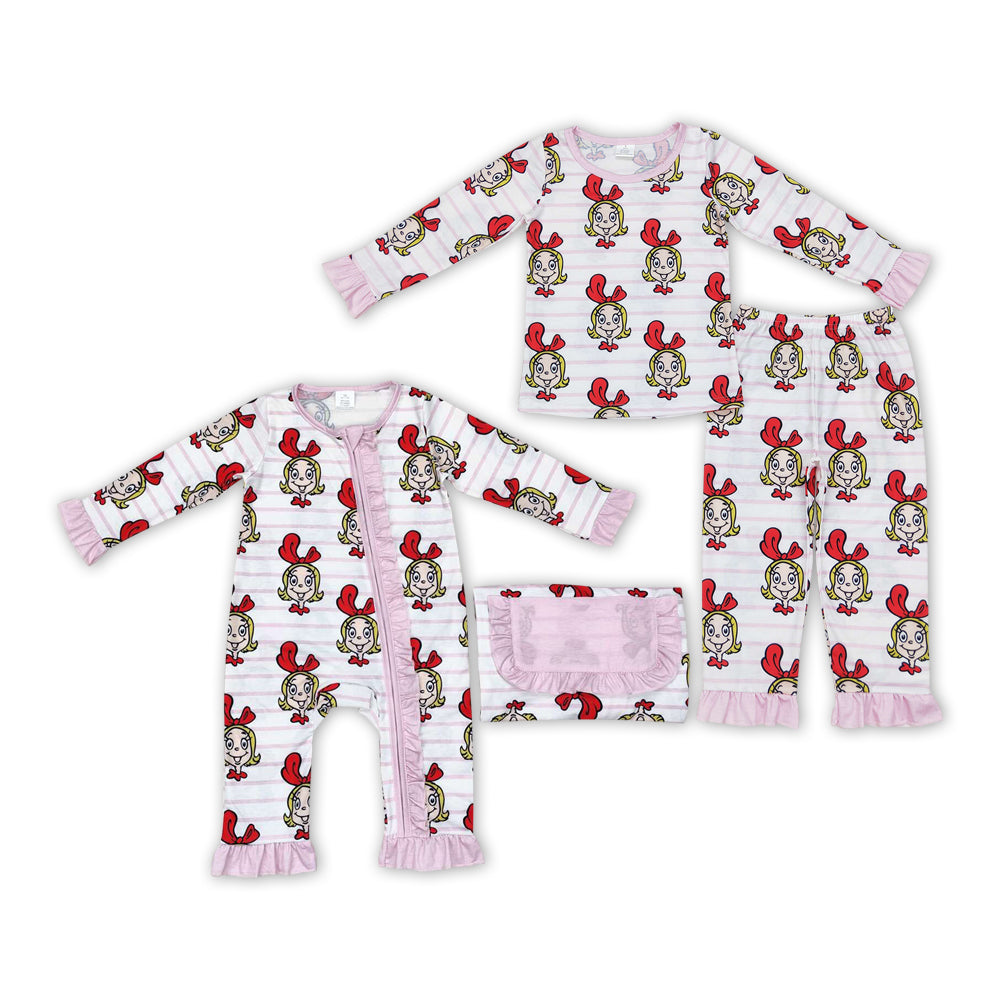Christmas Girl Pink Stripes Print Sisters Christmas Matching Pajamas Bamboo Clothes