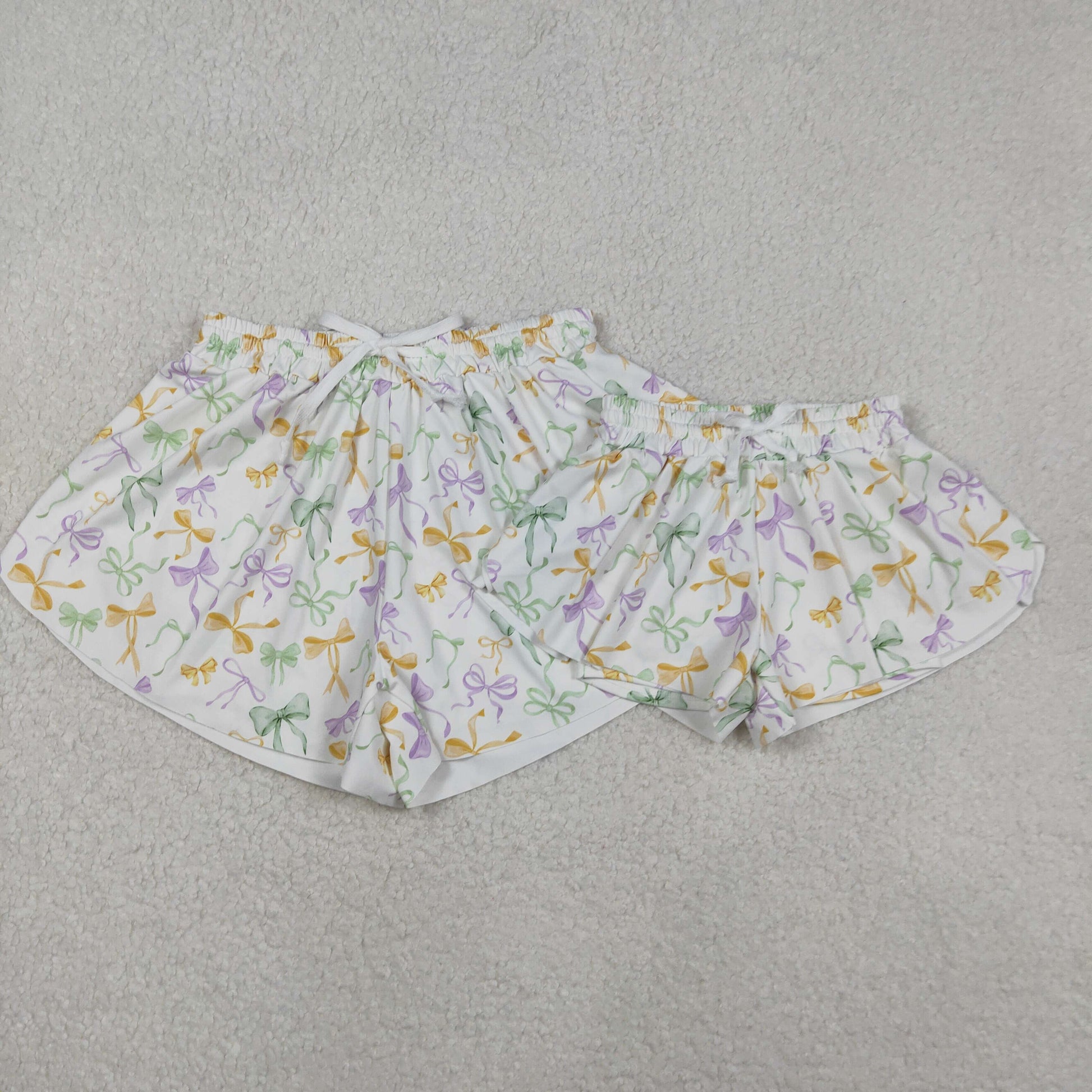 Colorful Bows Print Mom and Me Mardi Gras Bottom Yoga Flutter Shorts
