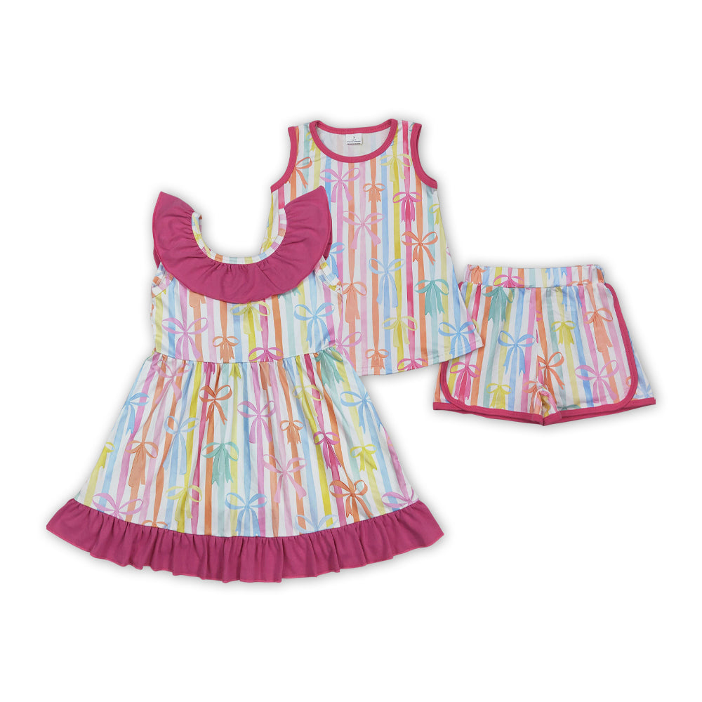 Colorful Bows Stripes Print Sisters Summer Matching Clothes