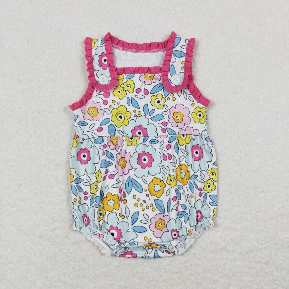 Colorful Flowers Pink Plaid Print Sisters Summer Matching Clothes