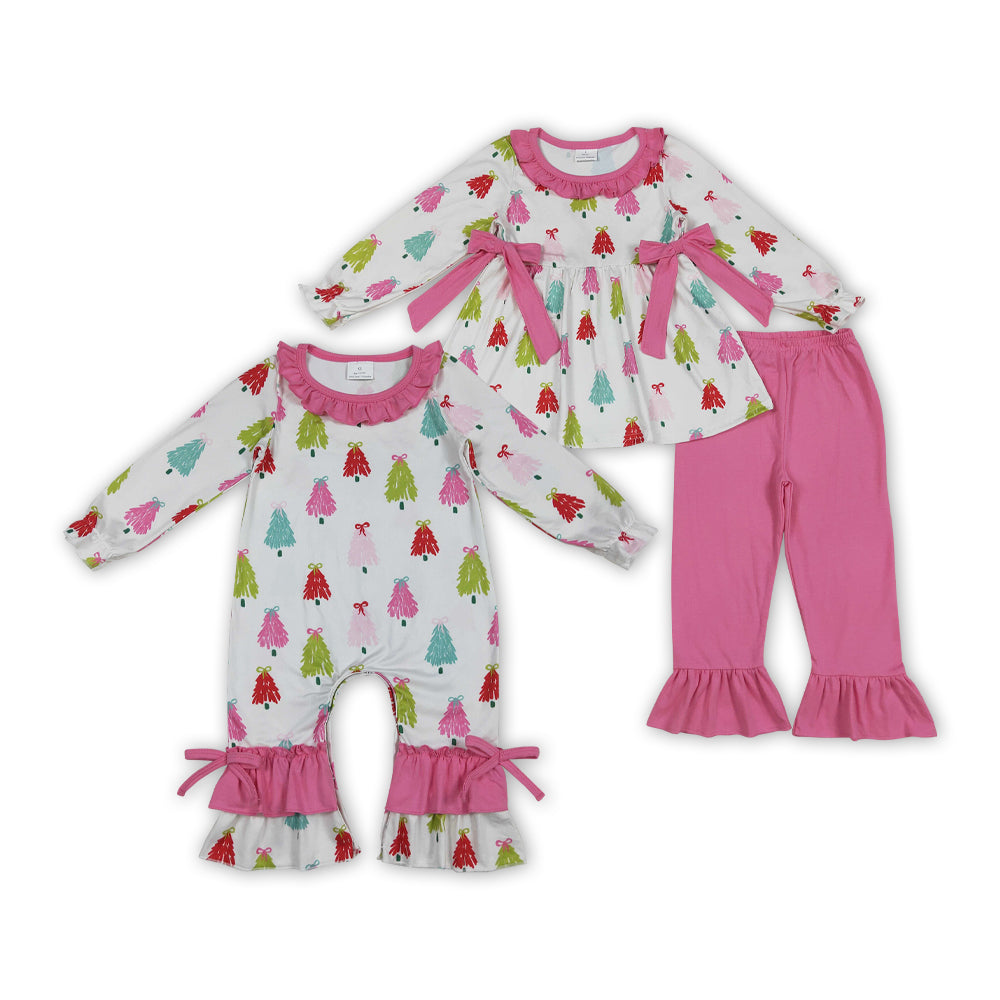 Colorful Tree Print Girls Christmas Clothes Sisters Matching Wear