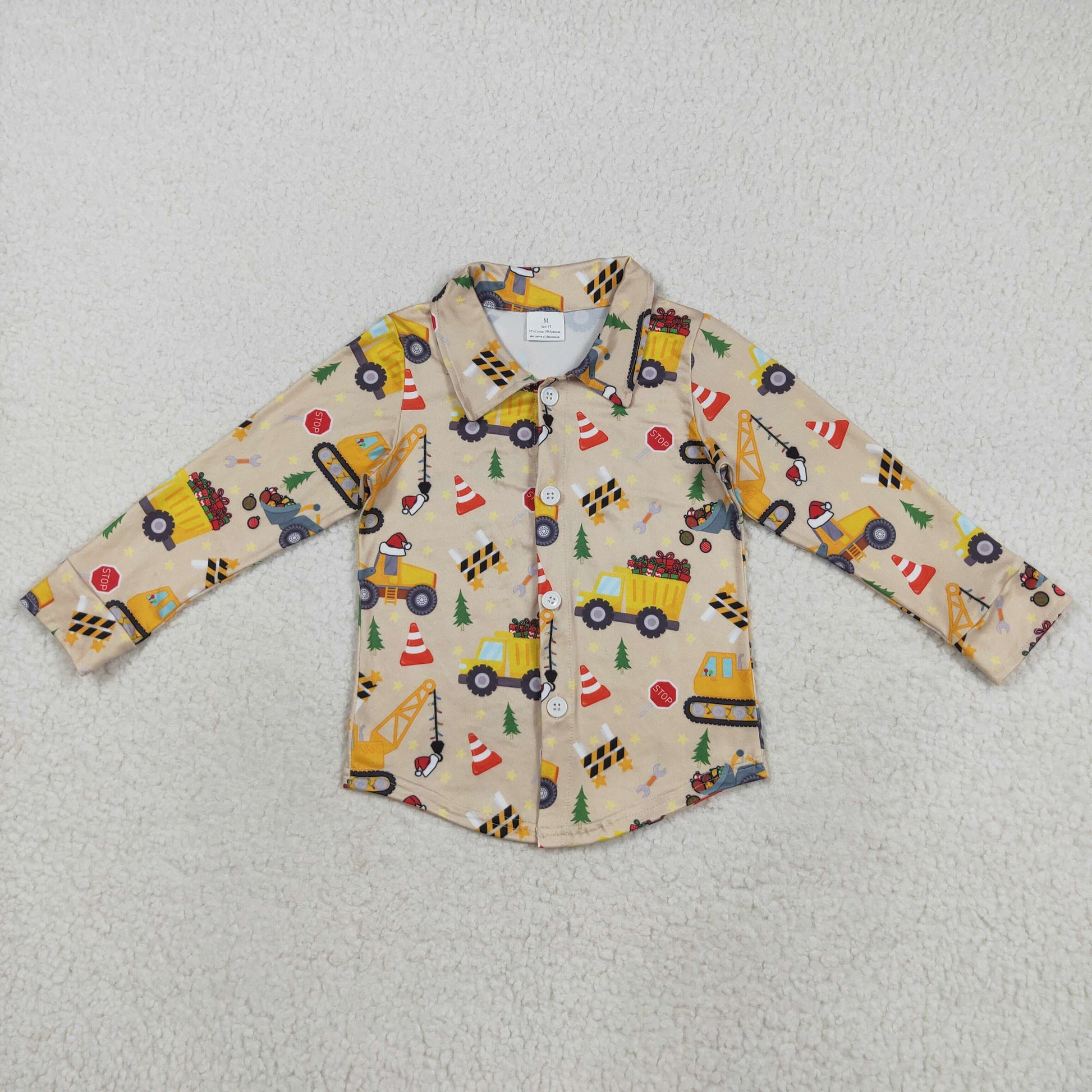 Construction Trucks Print Boys Christmas Clothes Brothers Matching Wear