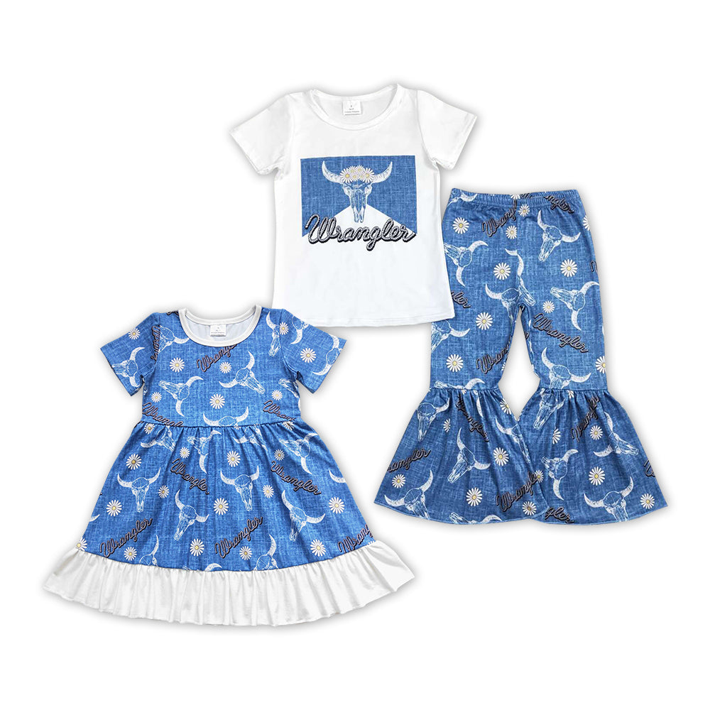 Cow Skull Daisy Blue Print Sisters Matching Western Clothes
