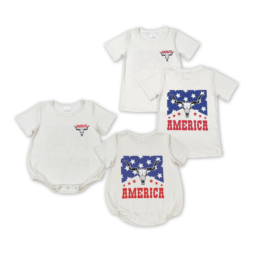 Cow Skull Stars America Print Brother's 4th of July Matching Clothes