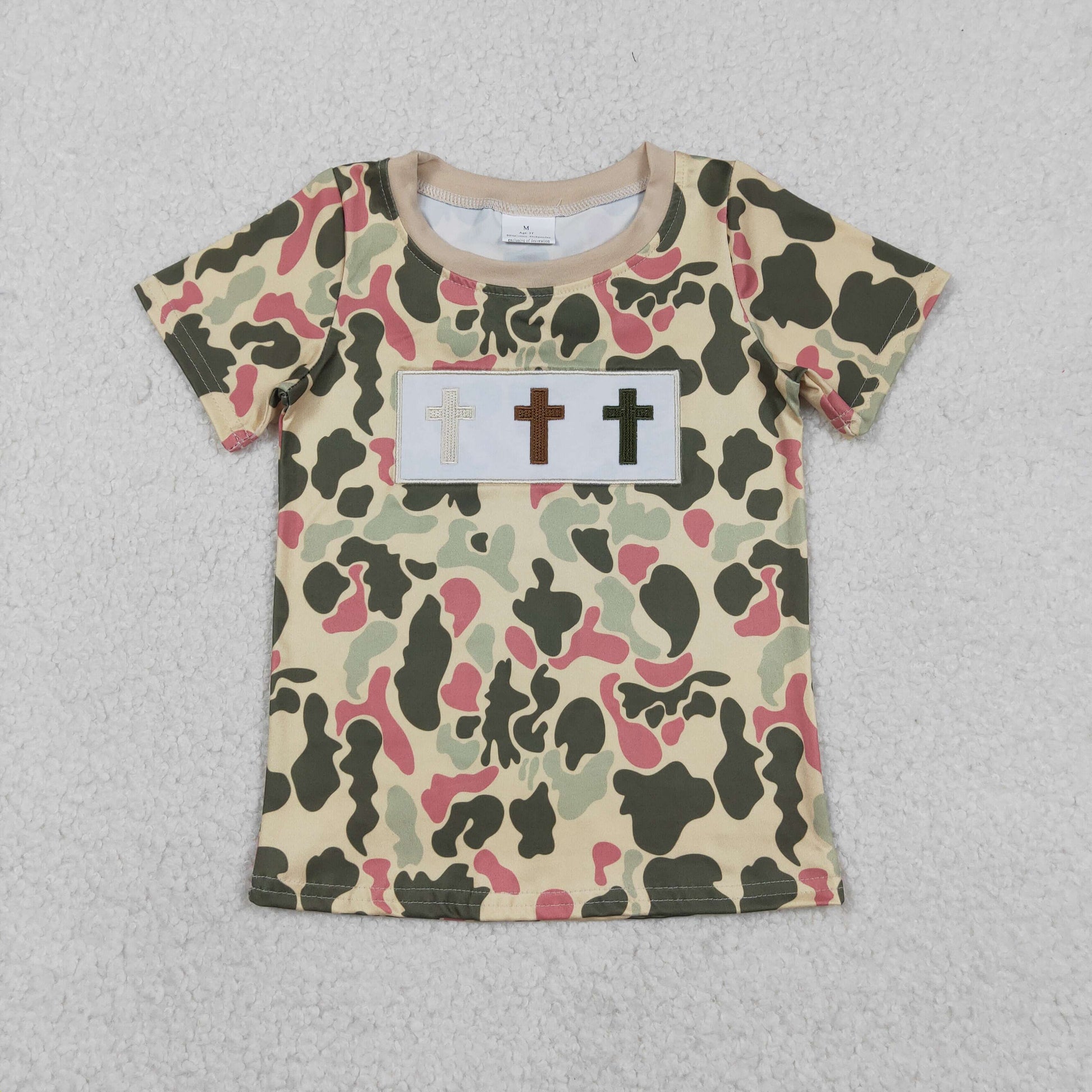 Cross Embroidery Camo Print Boys Easter Matching Clothes Brothers Wear