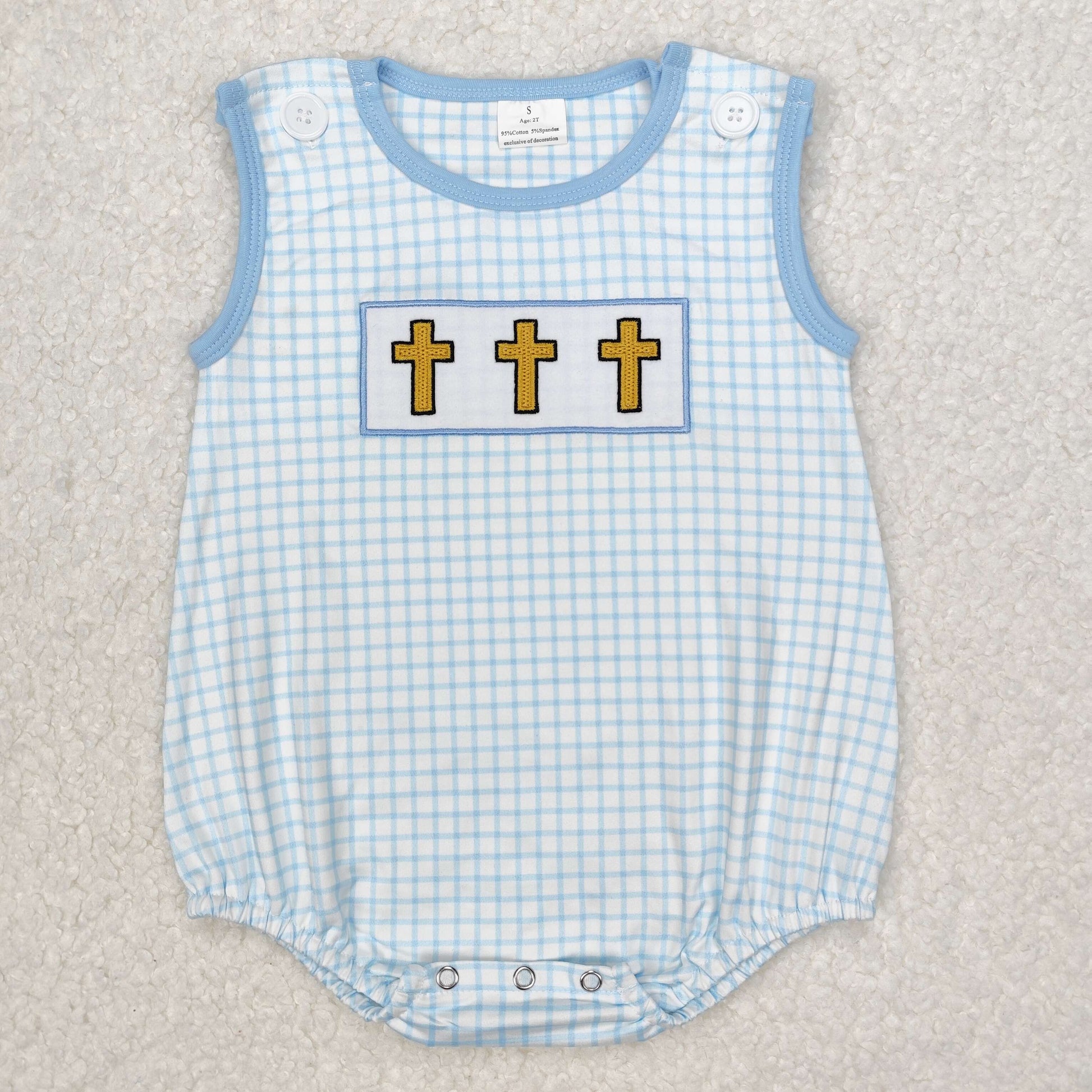 Cross Embroidery Plaid Print Sibling Easter Matching Clothes