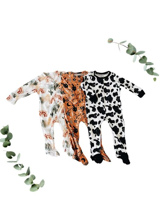 (Custom Design MOQ 5) Brown cactus cow skull baby girls zipper fall footed western romper