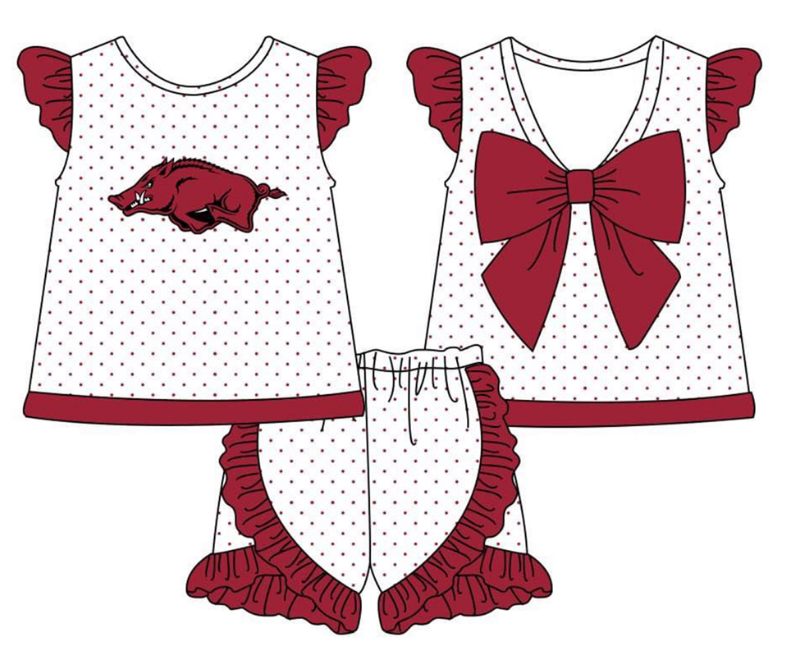 (Custom Design MOQ 5) Girls wine Football Team's Print shorts clothes set