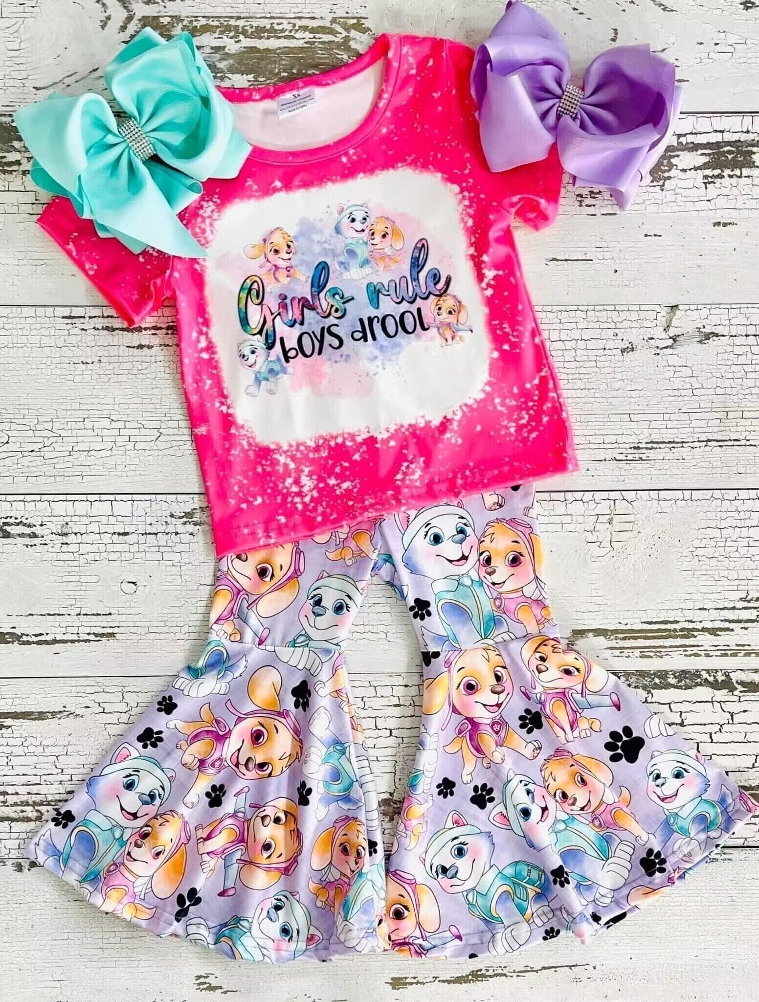 (Custom Design MOQ 5) Cartoon Dog Bell Pants Girls Clothes Set