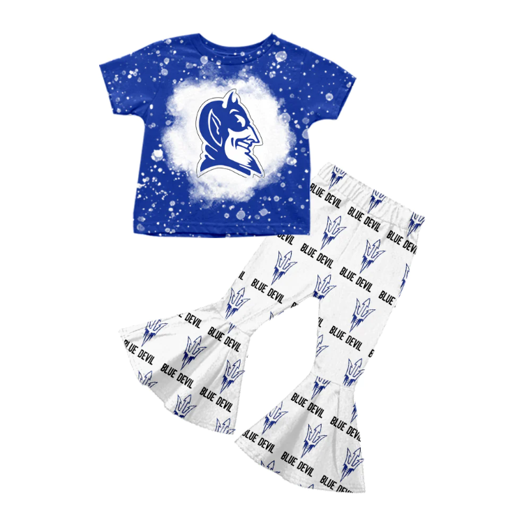 (Custom Design MOQ 5) Blue Football Team's Girls Clothes Set