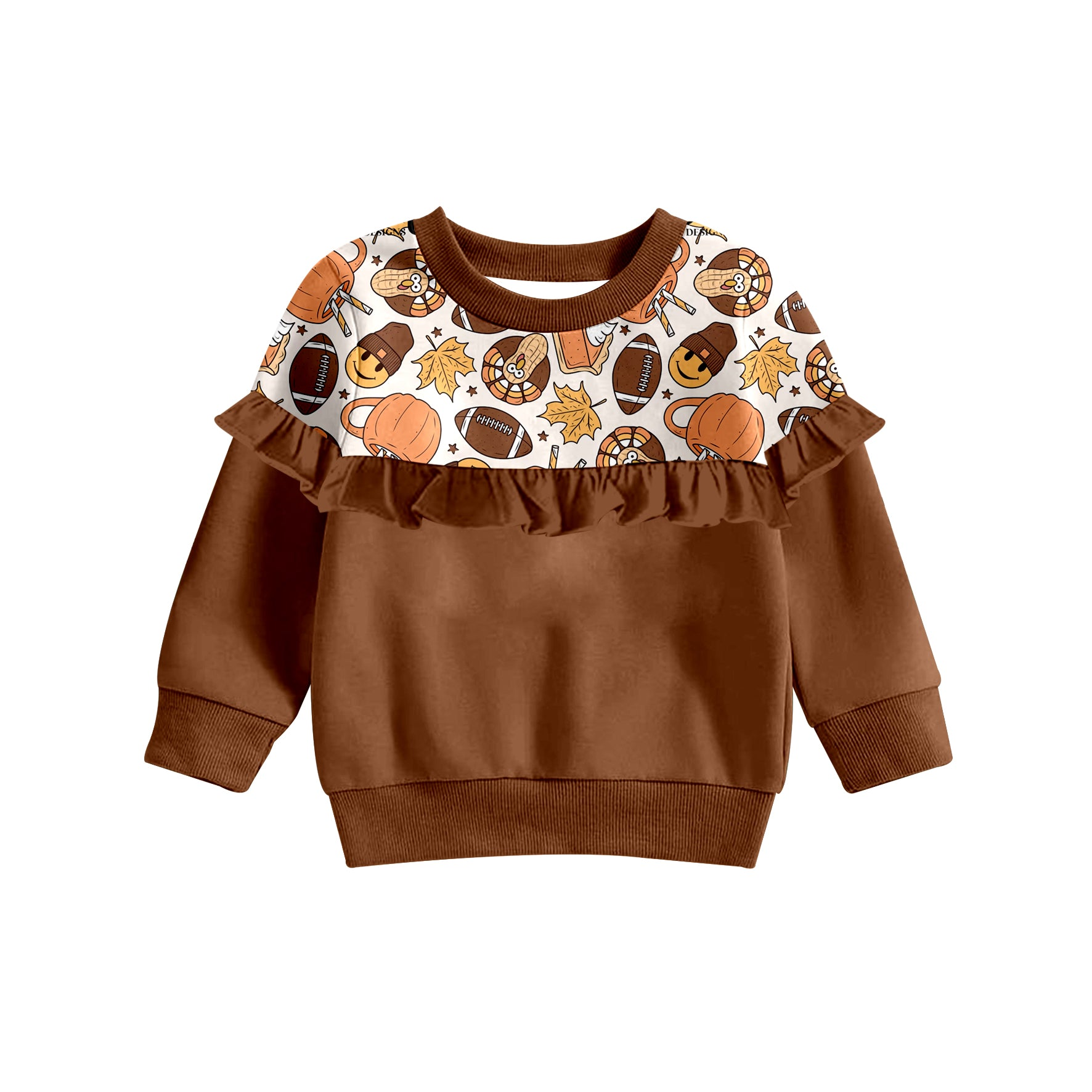 (Custom Design MOQ 5) Brown Turkey Football Girls Tee Shirts Top