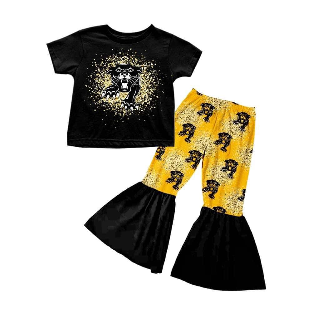 (Custom Design MOQ 5) Black Football Team's Bell Pants Girls Clothes Set
