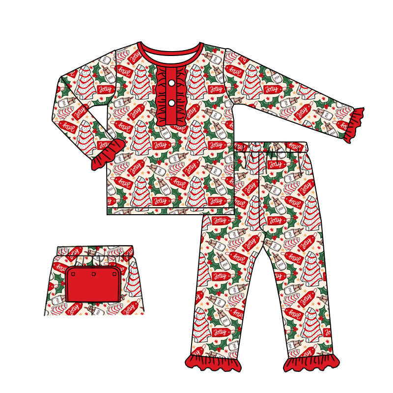 (Custom Design MOQ 5) Christmas Little Debbie Cakes Girls Pajamas Clothes Set