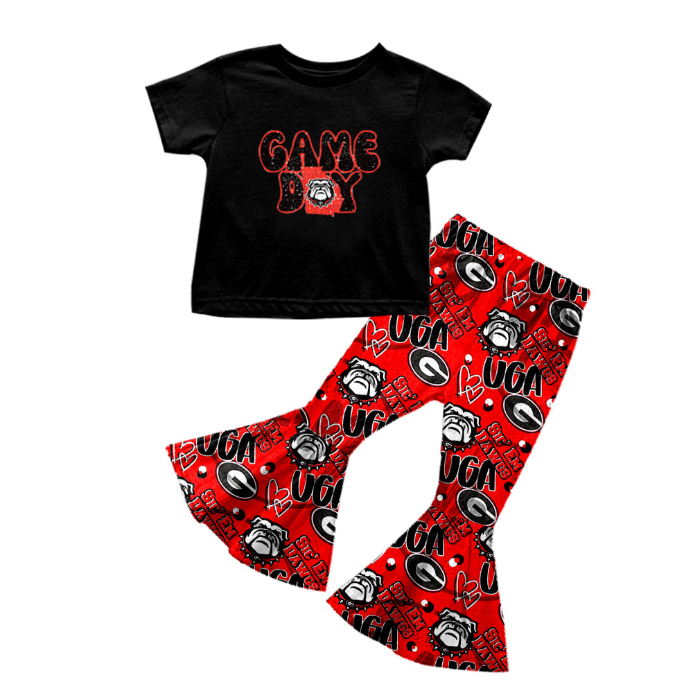 (Custom Design MOQ 5) Game Day Black Football Team's Bell Pants Girls Clothes Set