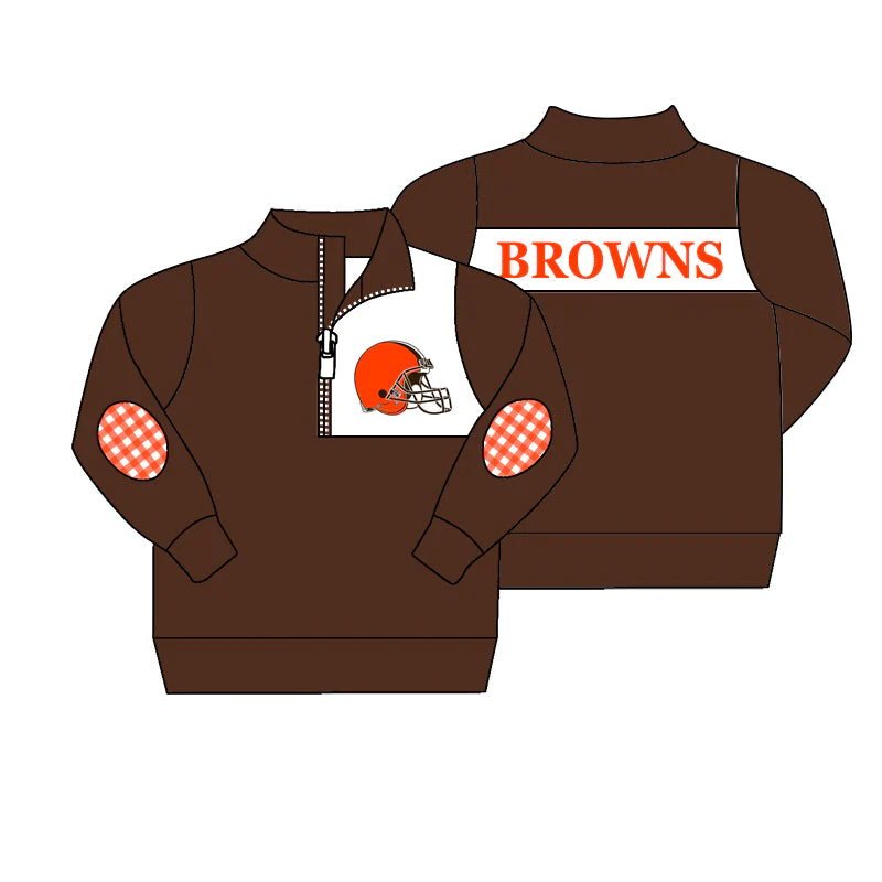 (Custom Design MOQ 5) Boys brown football team's long sleeve zipper pullover shirts