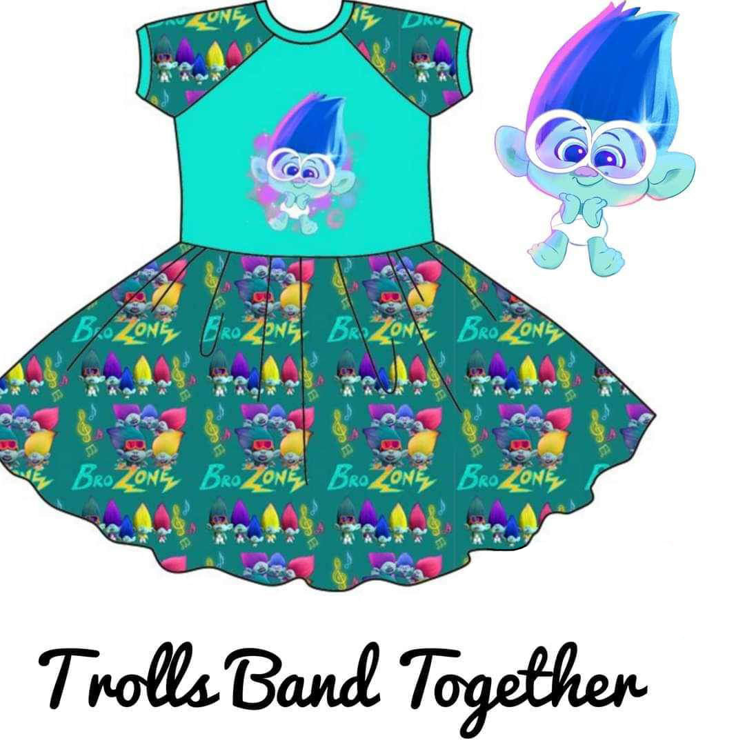 (Custom Design MOQ 5) Cartoon Character Print Girls Knee Length Dress