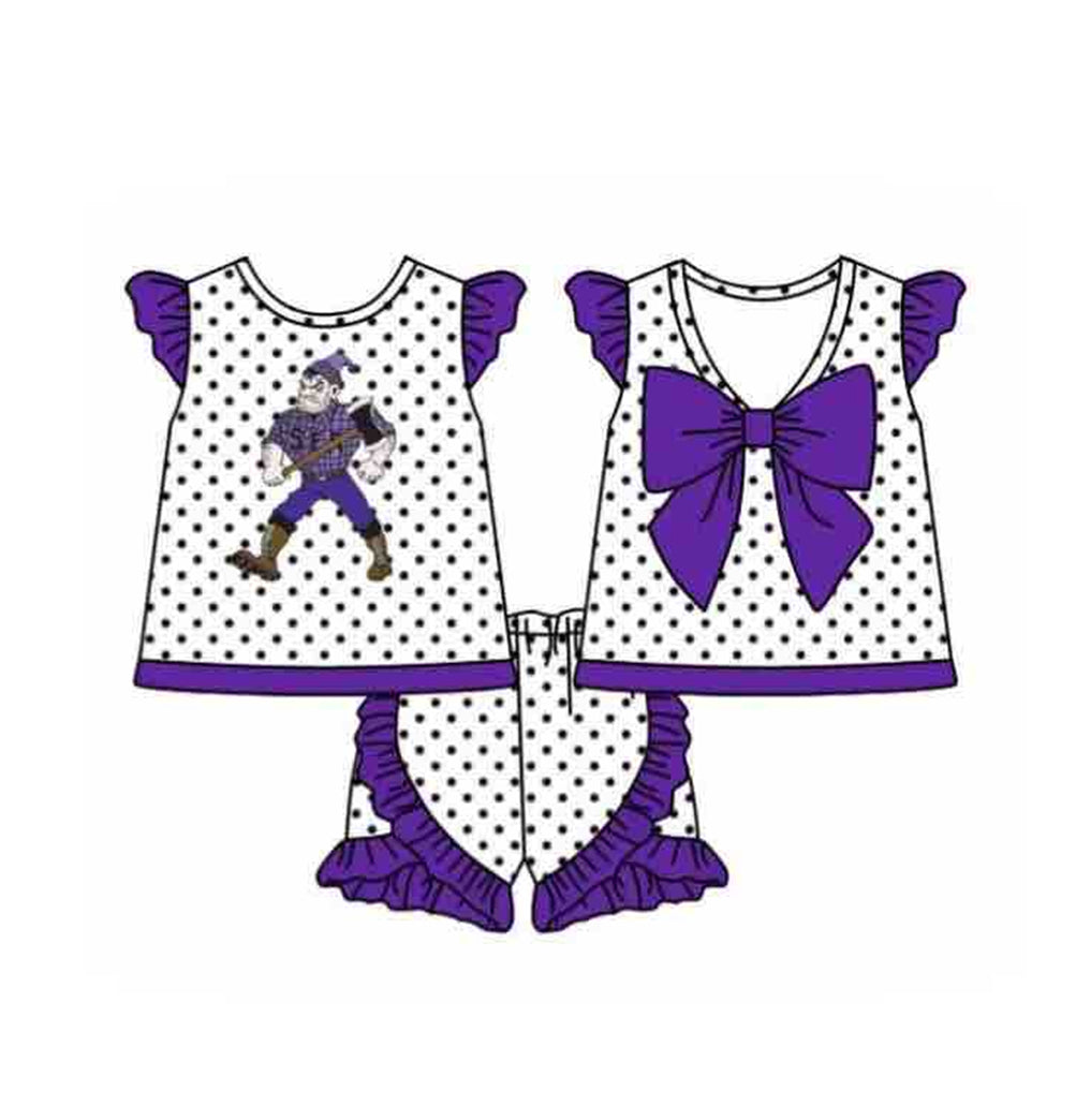 (Custom Design MOQ 5) Girls Purple Football Team's Print Shorts Clothes Set