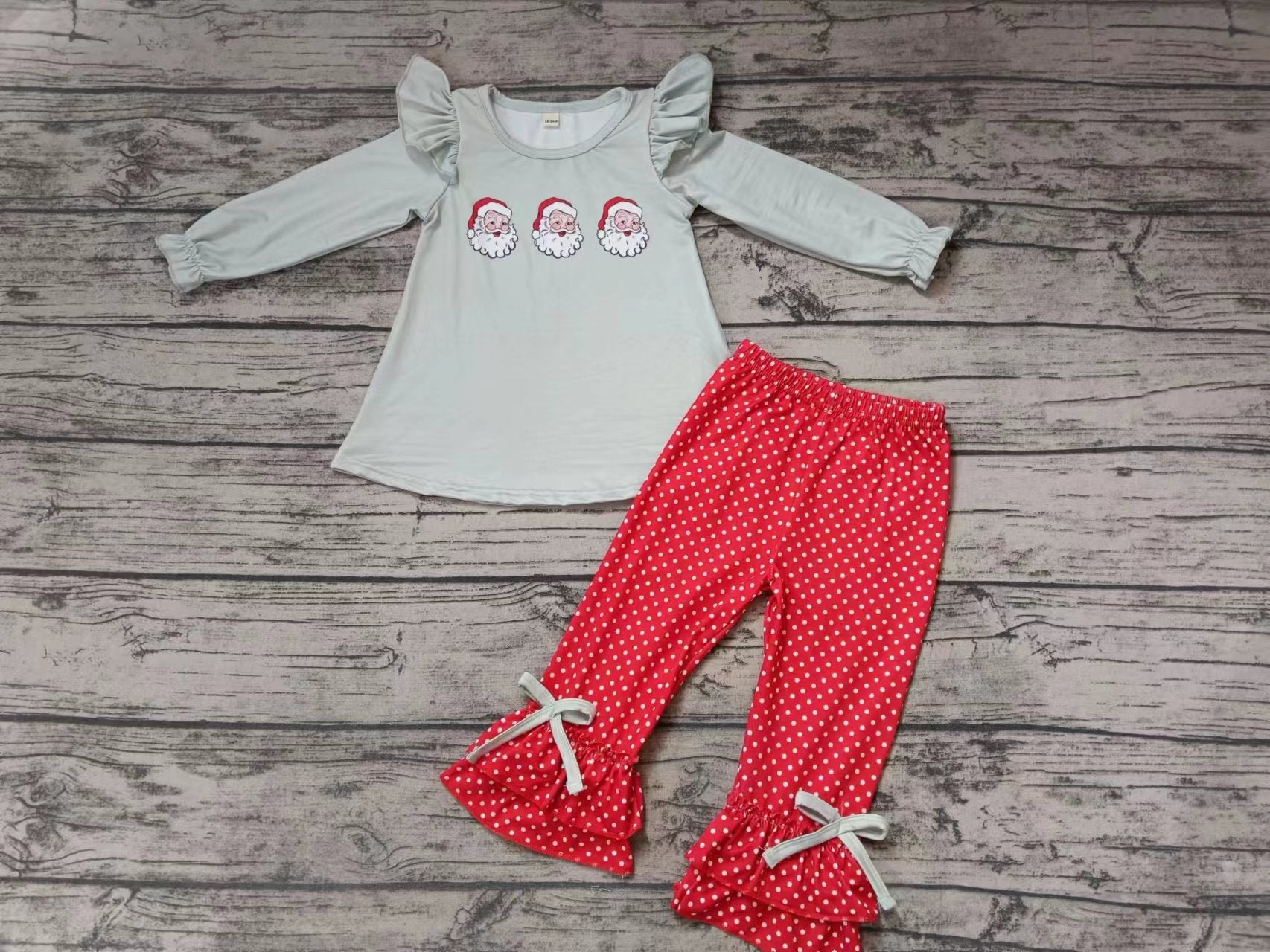 (Custom Design MOQ 5) Santa Top Red Dots Pants Girls Christmas Clothes Set