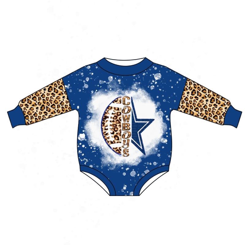 (Custom Design Preorder MOQ 5) Blue Leopard Sports Team's Print Infant Romper