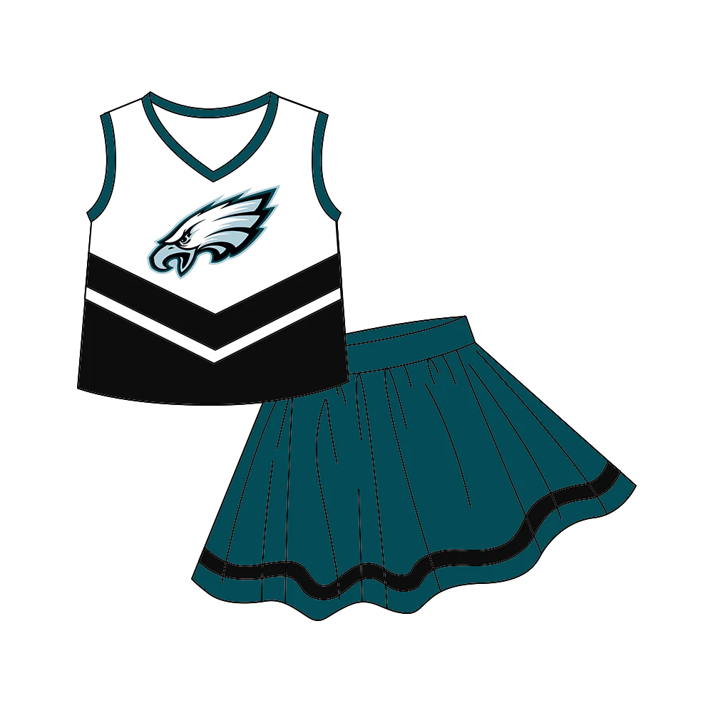 (Custom Design Preorder MOQ 5) Girls Dark Green Football Team's Print Skirts Clothes Set