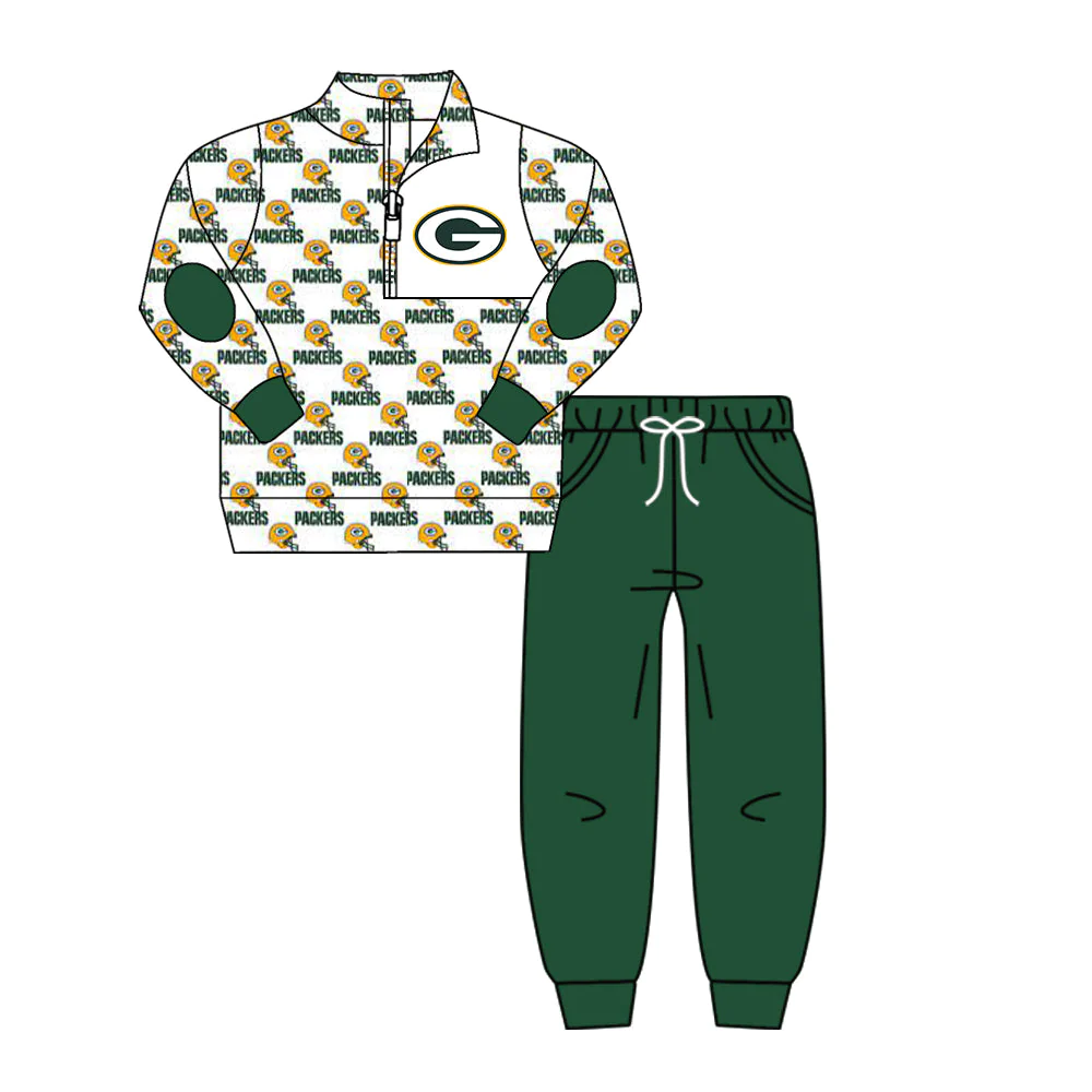 (Custom Design Preorder MOQ 5) Green football team's print button pullover shirts pants boys fall clothes set