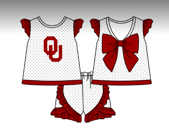 (Custom Design Preorder MOQ 5) Red Football Team's Girls Shorts Clothes Set