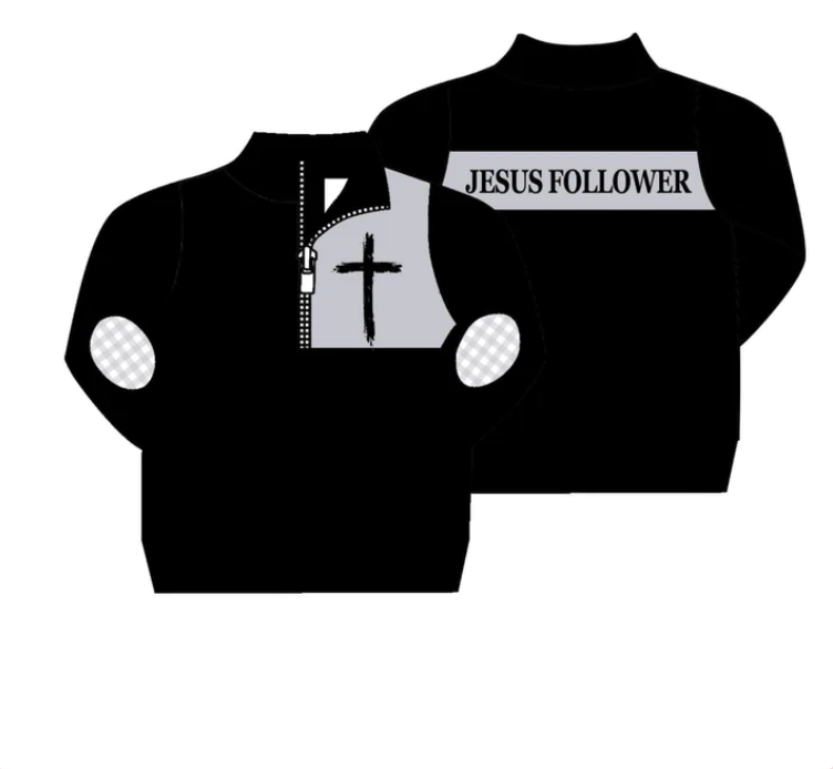 (Custom Design MOQ 5) Boys black jesus long sleeve zipper pullover shirts