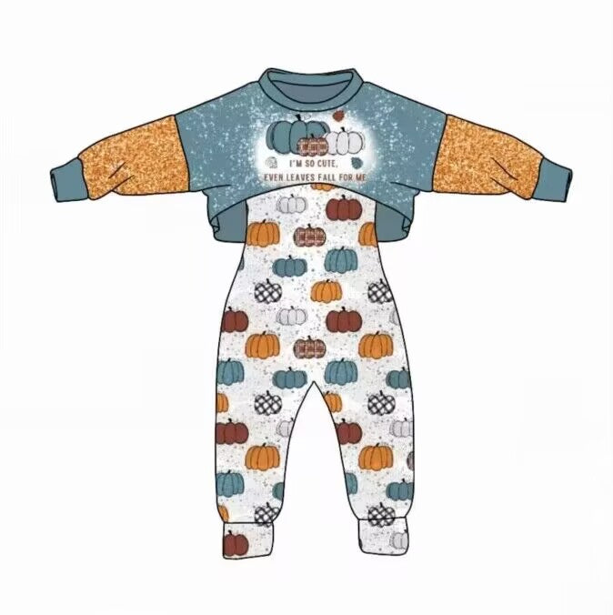 (Custom Design MOQ 5) Fall Pumpkin Girls Jumpsuits Clothes Set