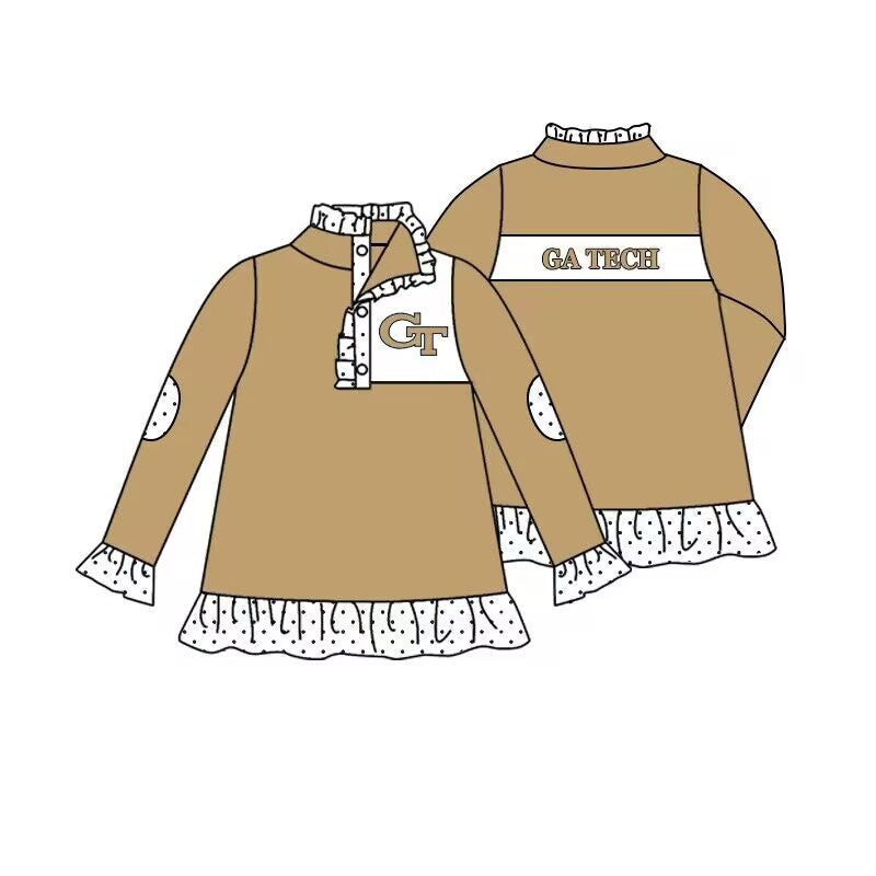 (Custom Design MOQ 5) Girls khaki football team's long sleeve button pullover shirts