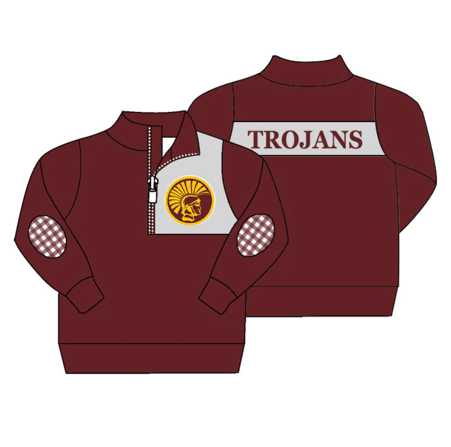 (Custom Design MOQ 5) Boys wine football team's long sleeve zipper pullover shirts