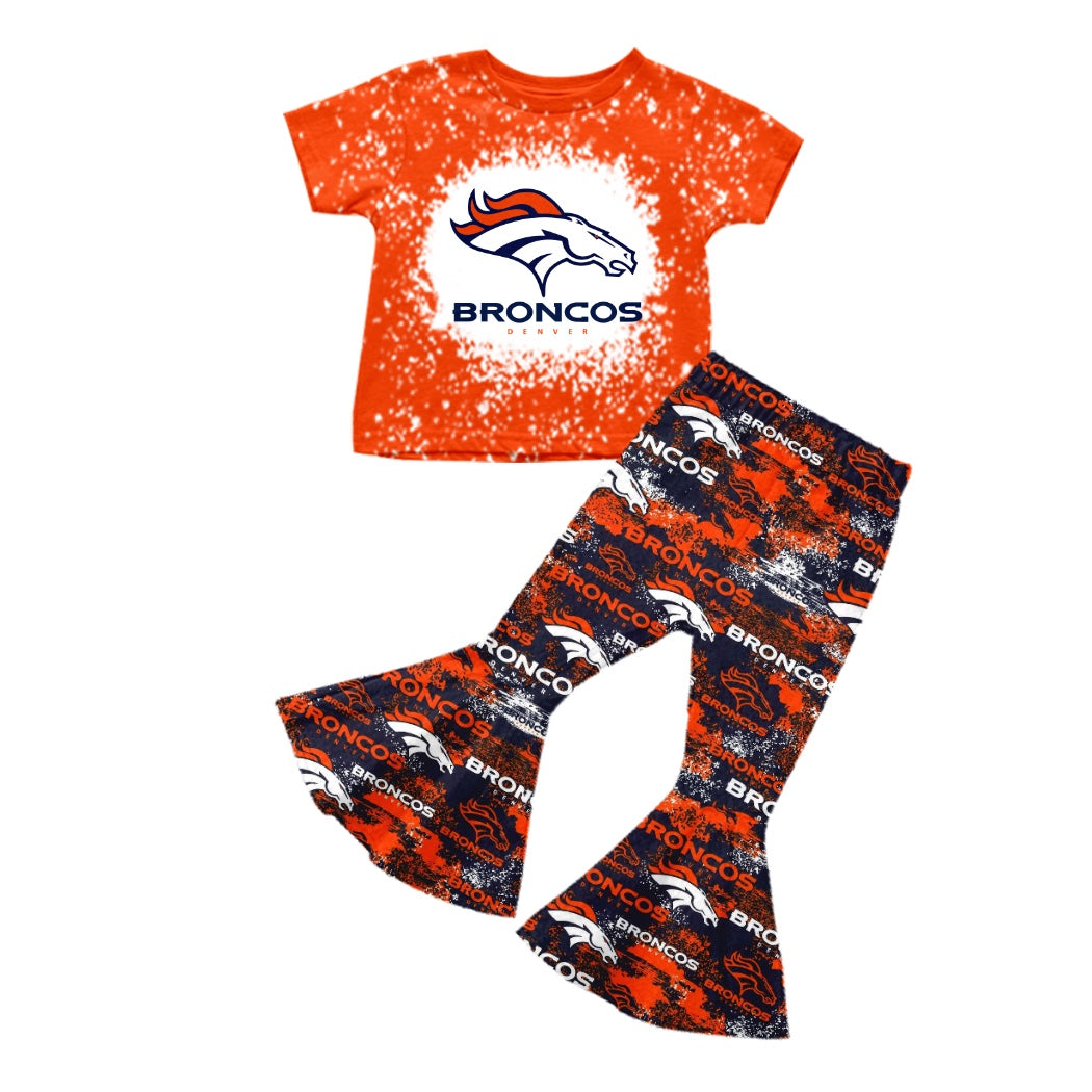 (Custom Design MOQ 5) Orange Football Team's Print Girls Bell Pants Clothes Set