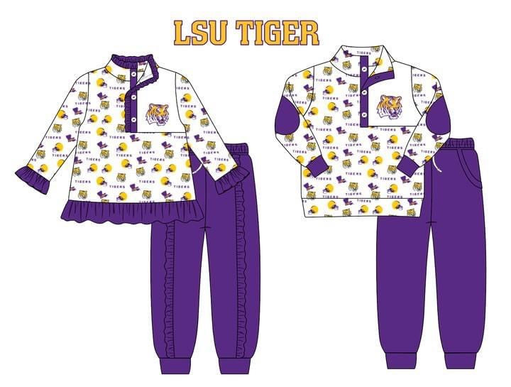 (Custom Design MOQ 5) Purple football team's print button pullover shirts pants boys fall clothes set