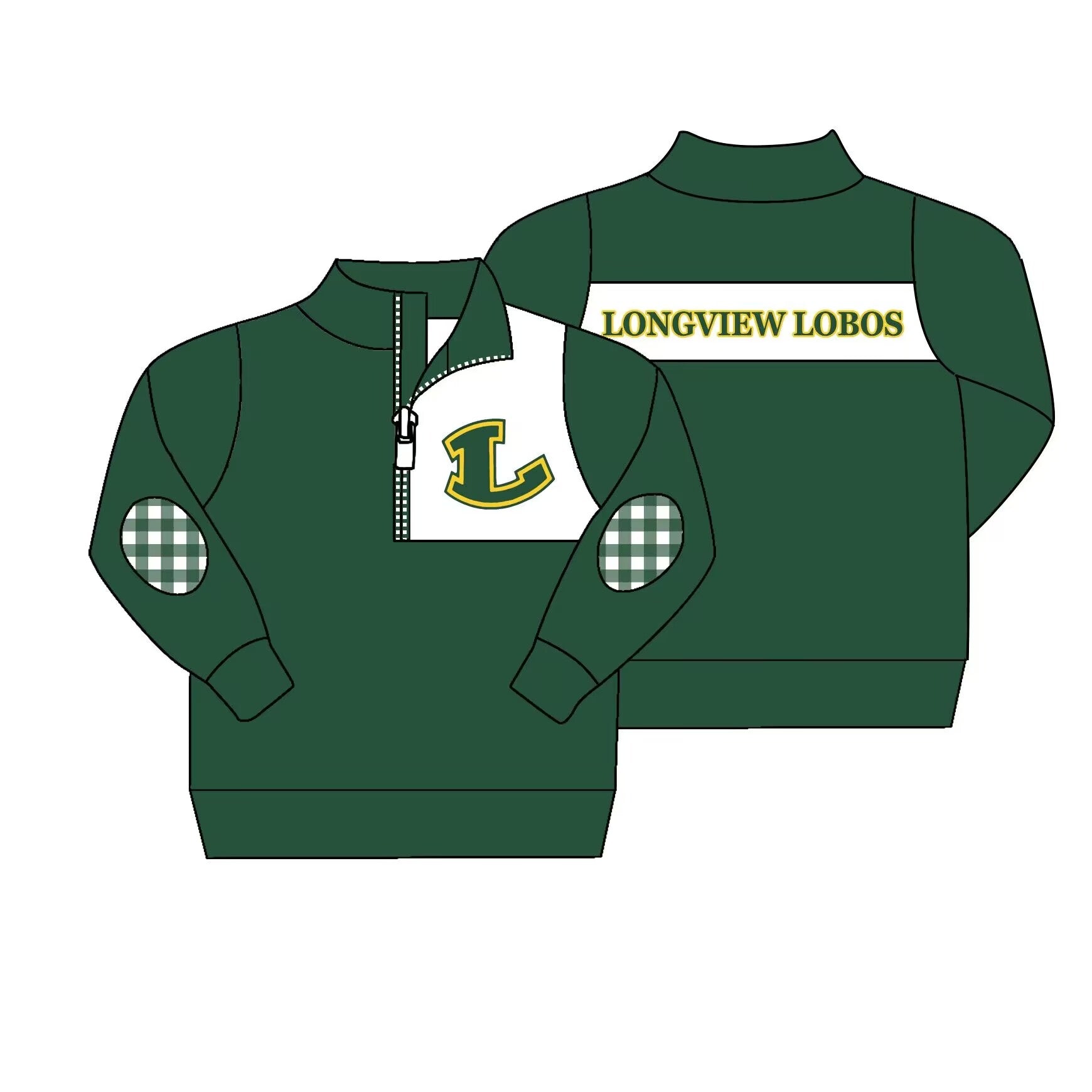 (Custom Design MOQ 5) Adult green football team's long sleeve zipper pullover shirts
