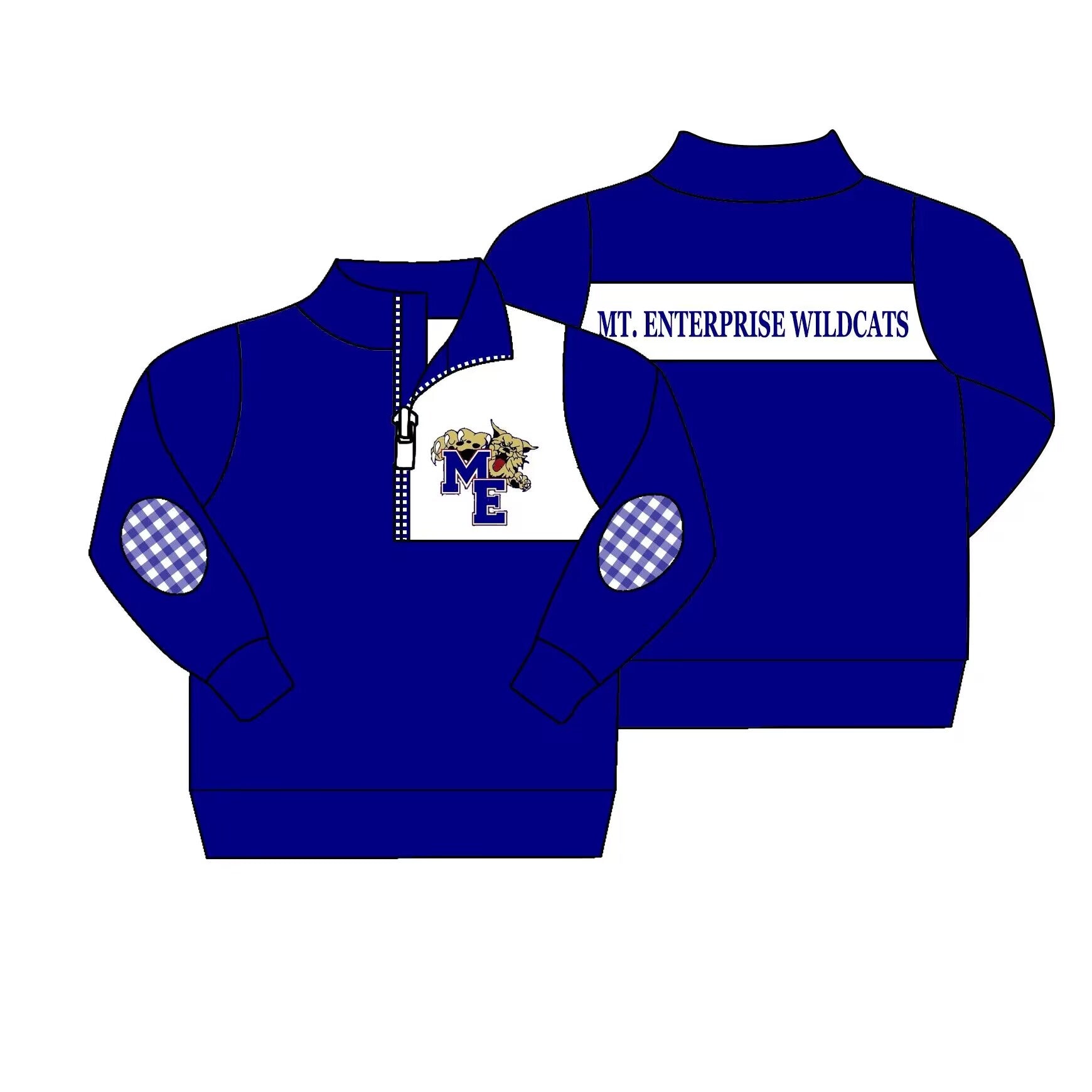 (Custom Design MOQ 5) Boys dark blue football team's long sleeve zipper pullover shirts