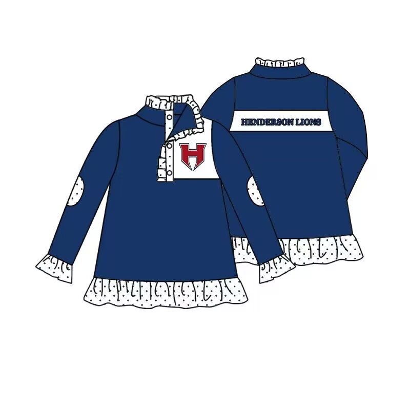(Custom Design MOQ 5) Girls dark blue football team's long sleeve button pullover shirts