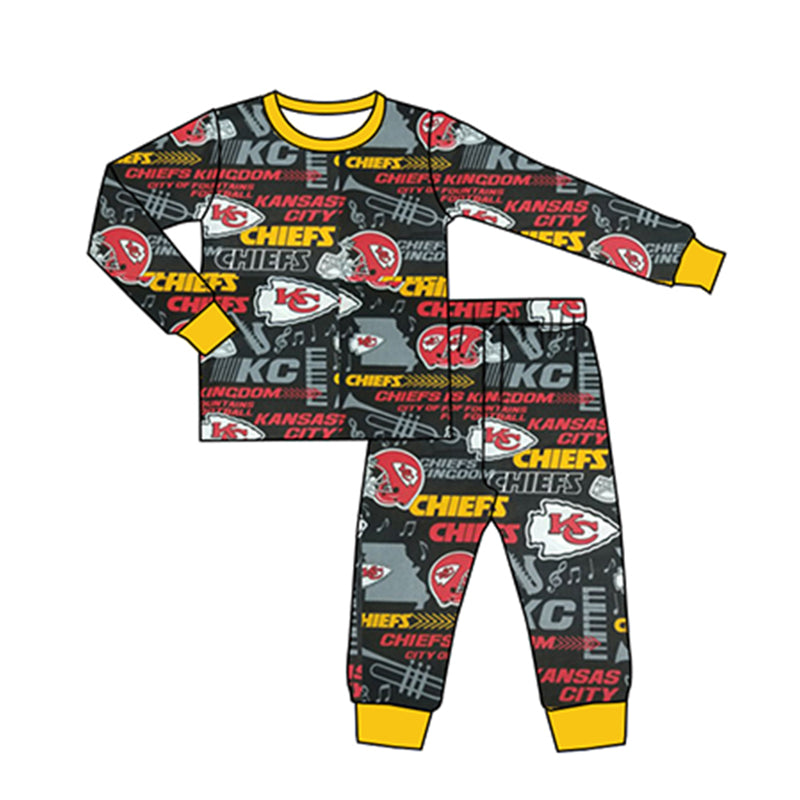 (Custom Design MOQ 5) Black Football Team's Kids Pajamas Clothes Set