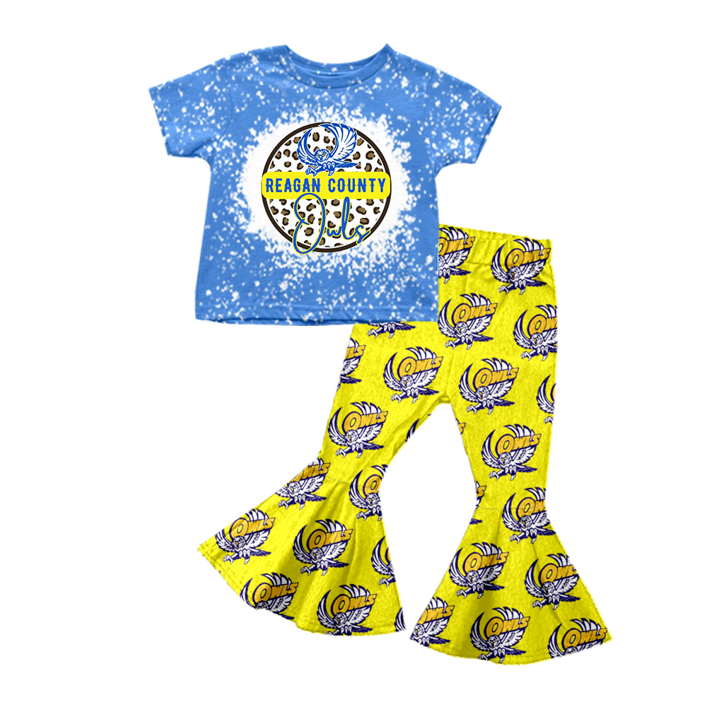 (Custom Design MOQ 5) Blue Top Yellow Pants Football Team's Girls Clothes Set