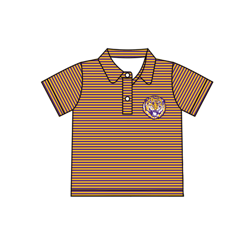 (Custom Design MOQ 5) Boys yellow purple stripes tiger football team's polo tee shirts top