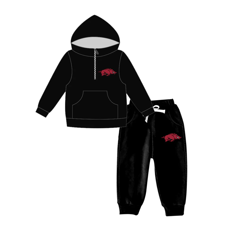 (Custom Design MOQ 5) Black football team's print boys hoodie fall clothes set