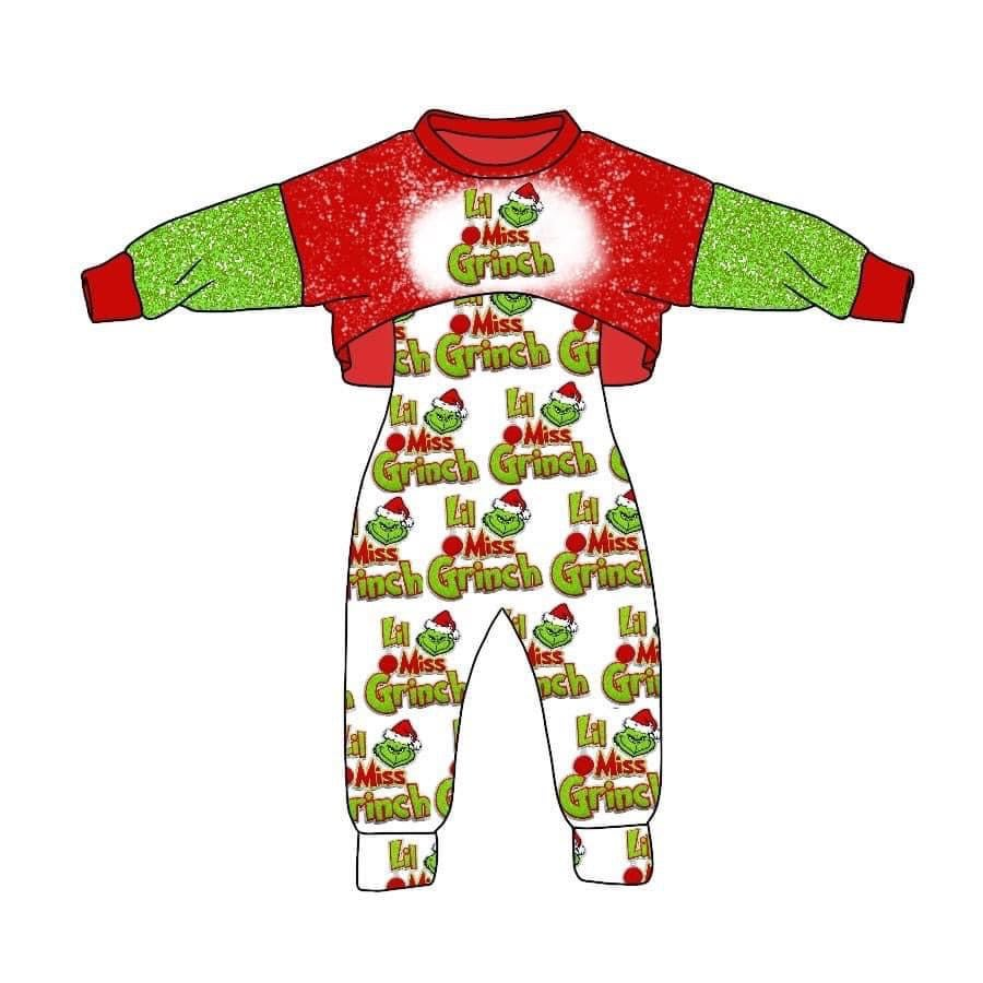 (Custom Design MOQ 5) Cute Christmas Frog Face Girls Jumpsuits Clothes Set