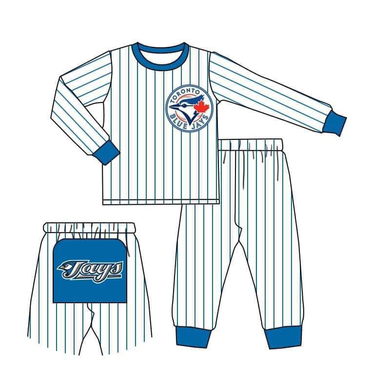 (Custom Design MOQ 5) Blue Sports Team's Pajamas Kids Clothes Set