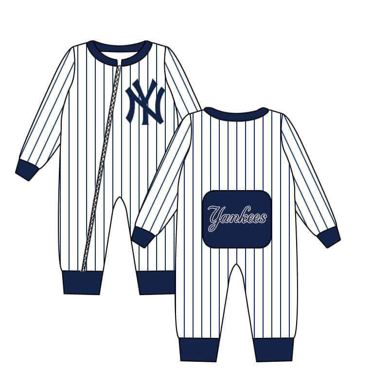(Custom Design MOQ 5) Navy Sports Team's Print Infant Zipper Romper
