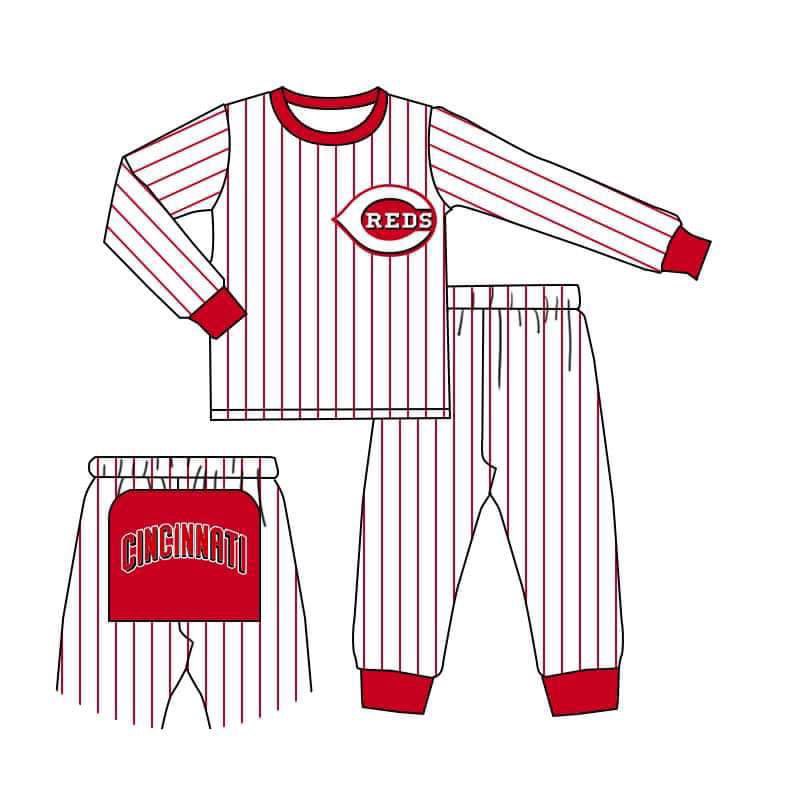 (Custom Design Preorder MOQ 5)Red Sports Team's Pajamas Kids Clothes Set
