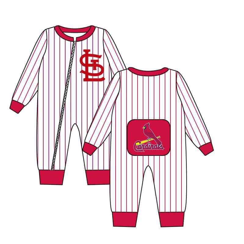 (Custom Design Preorder MOQ 5)Red Sports Team's Print Infant Zipper Romper