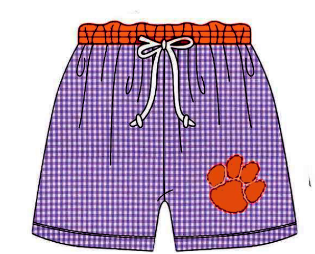 (Custom Design Preorder MOQ 5) Boys purple plaid summer swim trunks