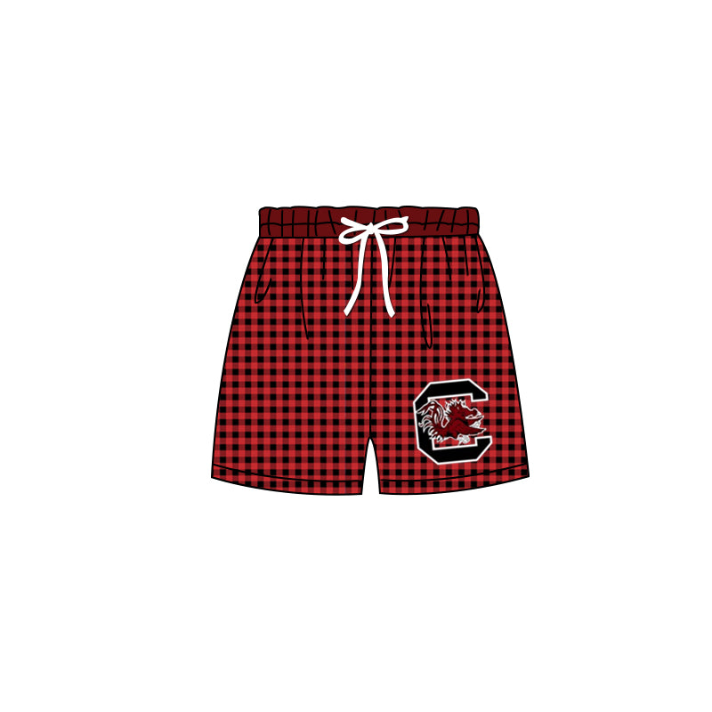 (Custom Design Preorder MOQ 5) Boys red plaid summer swim trunks