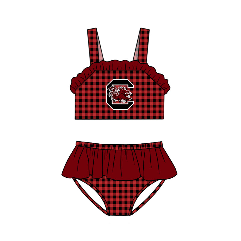 (Custom Design Preorder MOQ 5) Girlsred plaid summer 2 pcs swinsuit