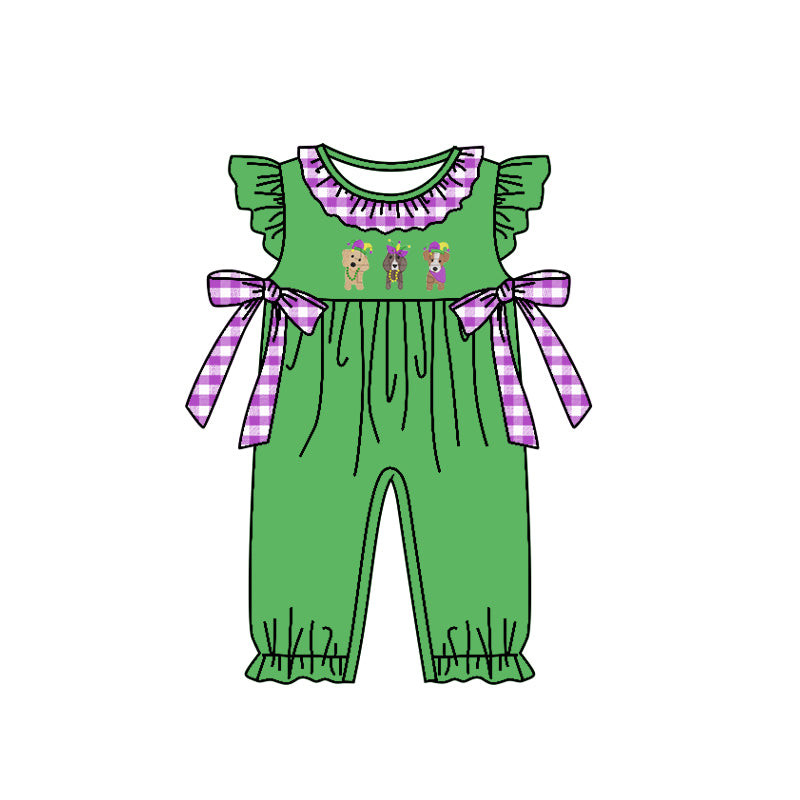 (Custom Design MOQ 5) 3 Dog Print Baby Girls Mardi Gras Romper