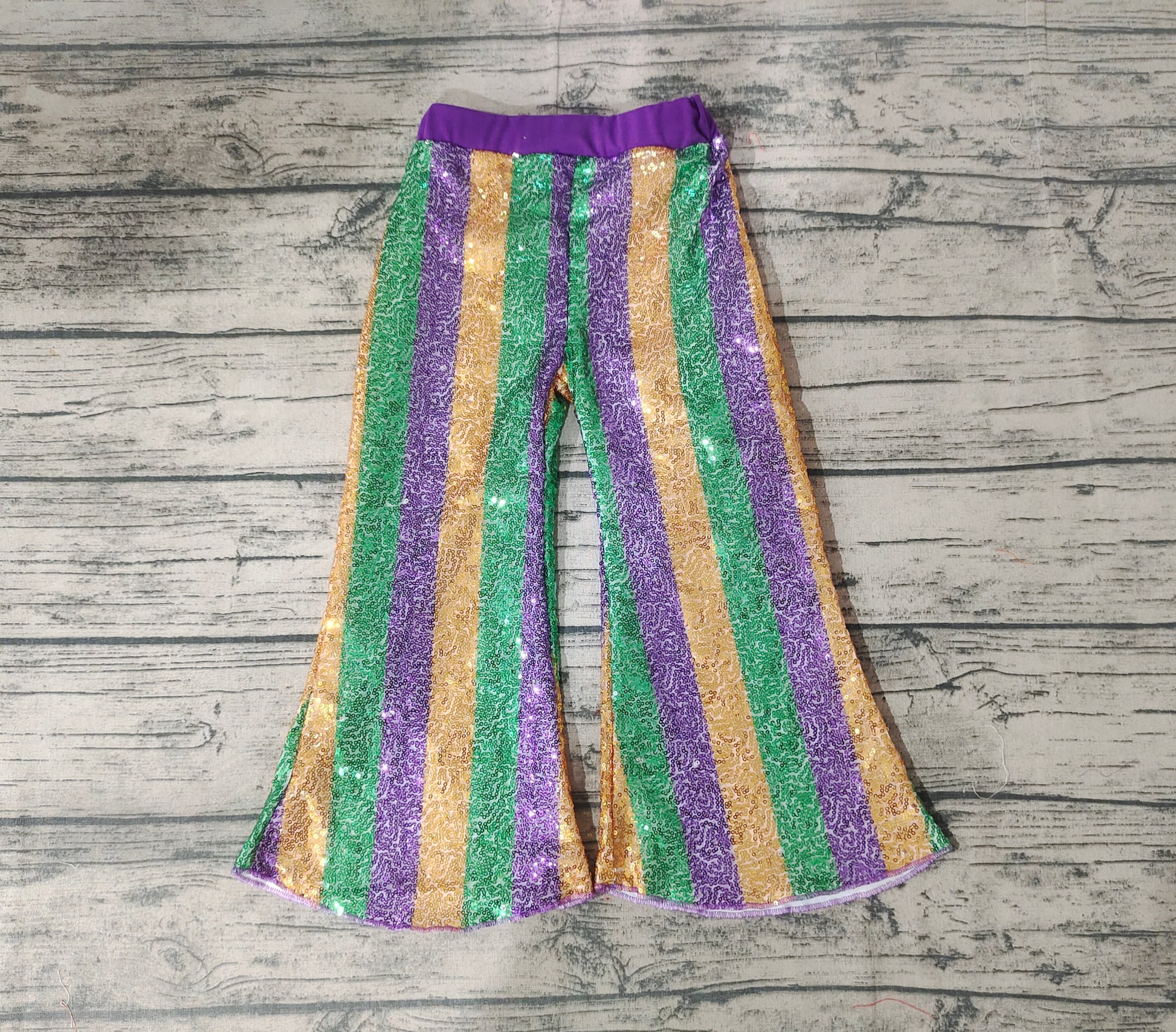 (Custom Design MOQ 5) Adult green golden stripes sequin bell bottom pants